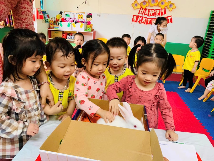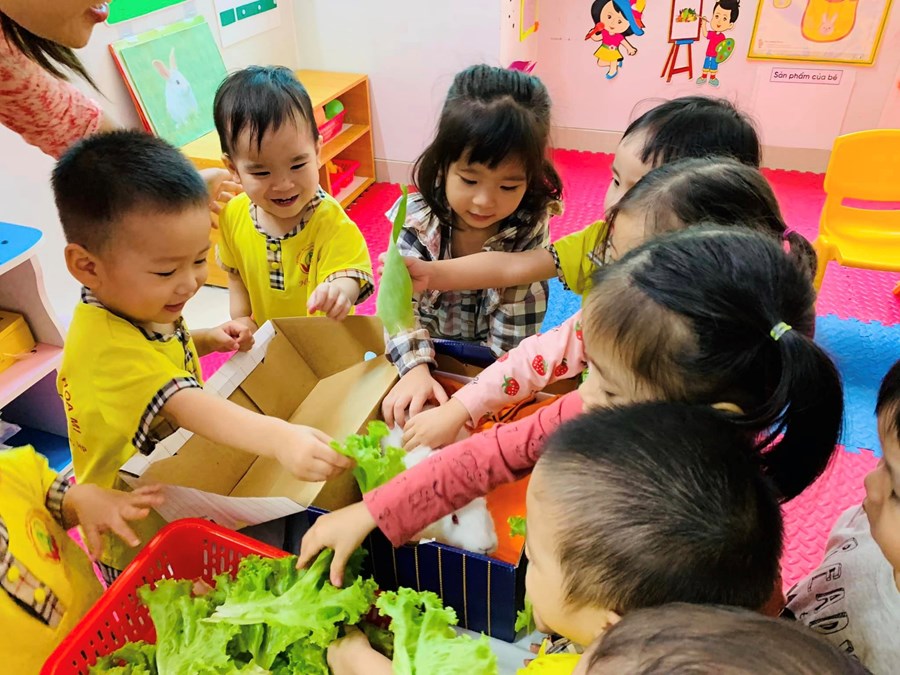 Thích nhất khi các con được vuốt ve cảm nhận bộ lông mượt mà , mềm mại của chú Thỏ, được ngắm đôi tai dài, được tận tay cho Thỏ ăn những lá rau diếp xanh non ..